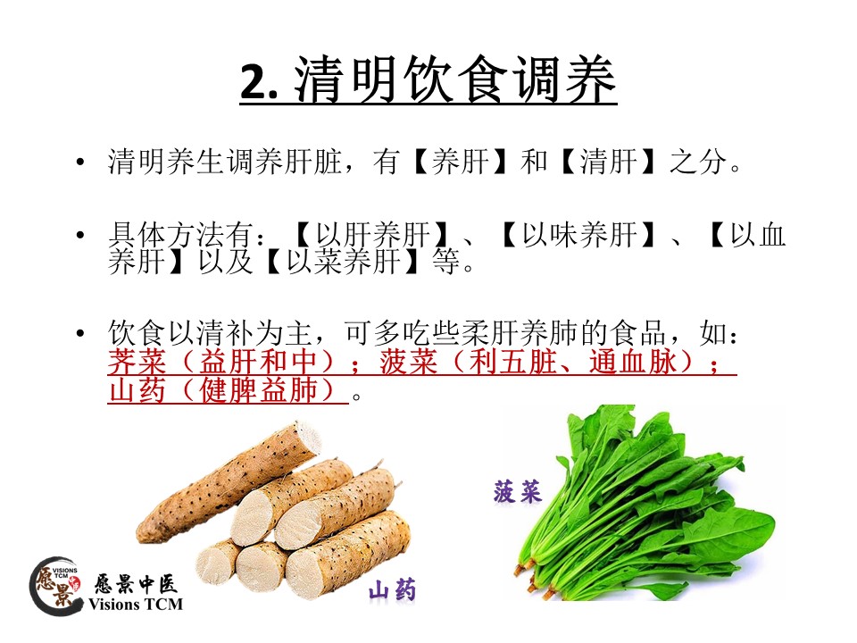 1) 饮食以清补为主,可多吃些柔肝养肺的食品,如:荠菜(益肝和中);菠菜(利五脏、通血脉);山药(健脾益肺)。