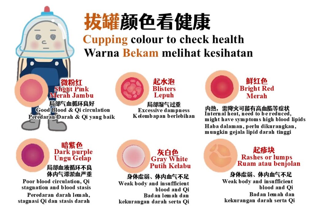 拔罐后的颜色可以代表身体状况: