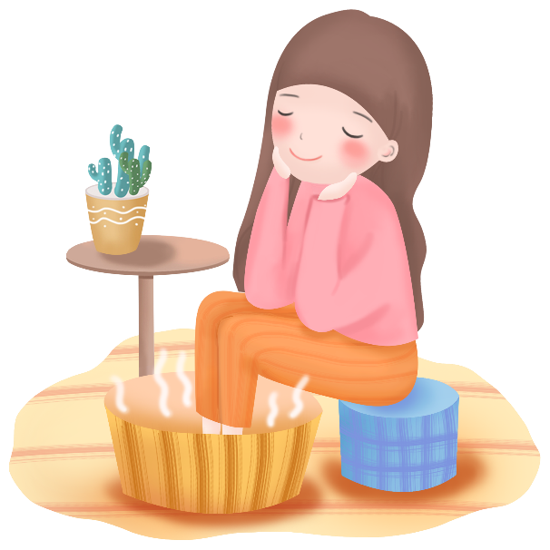 - 以温热水泡脚可以活血通络,促进全身血液循环,不仅可以有效缓解月经期前的各种不适, 还可以使全身放松,改善睡眠质量。