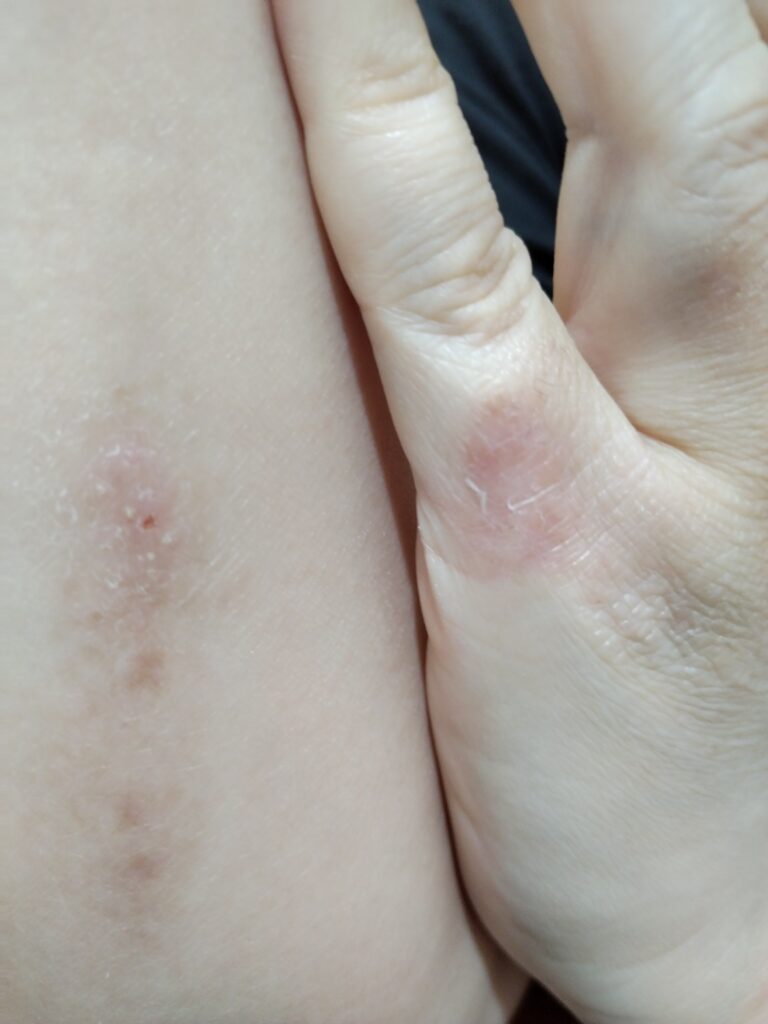 we observed the dermatitis spot at the little finger has recovered gradually.