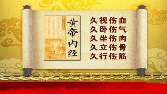 “Huang Di Nei Jing” say “Protracted use of eyes impairs the blood, Protracted lying damages qi, Protracted sitting injures the muscles, Protracted standing inujres the bones, Prolonged walking injuring tendons, ”