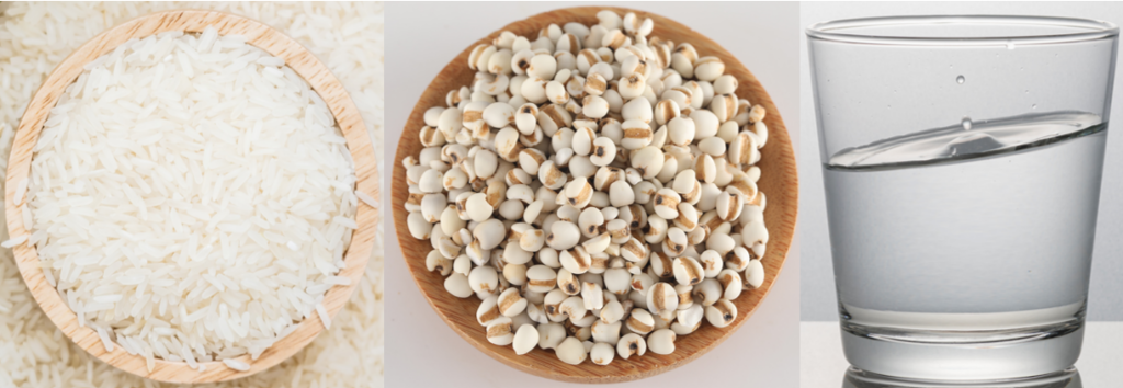 – Rendam biji selasih dalam air selama 4-5 jam dan rendam beras selama 30 minit.