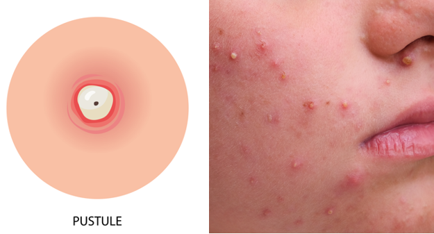 比丘疹更严重的炎症,形成深层、大块的痤疮,可能伴有疼痛和明显的红肿